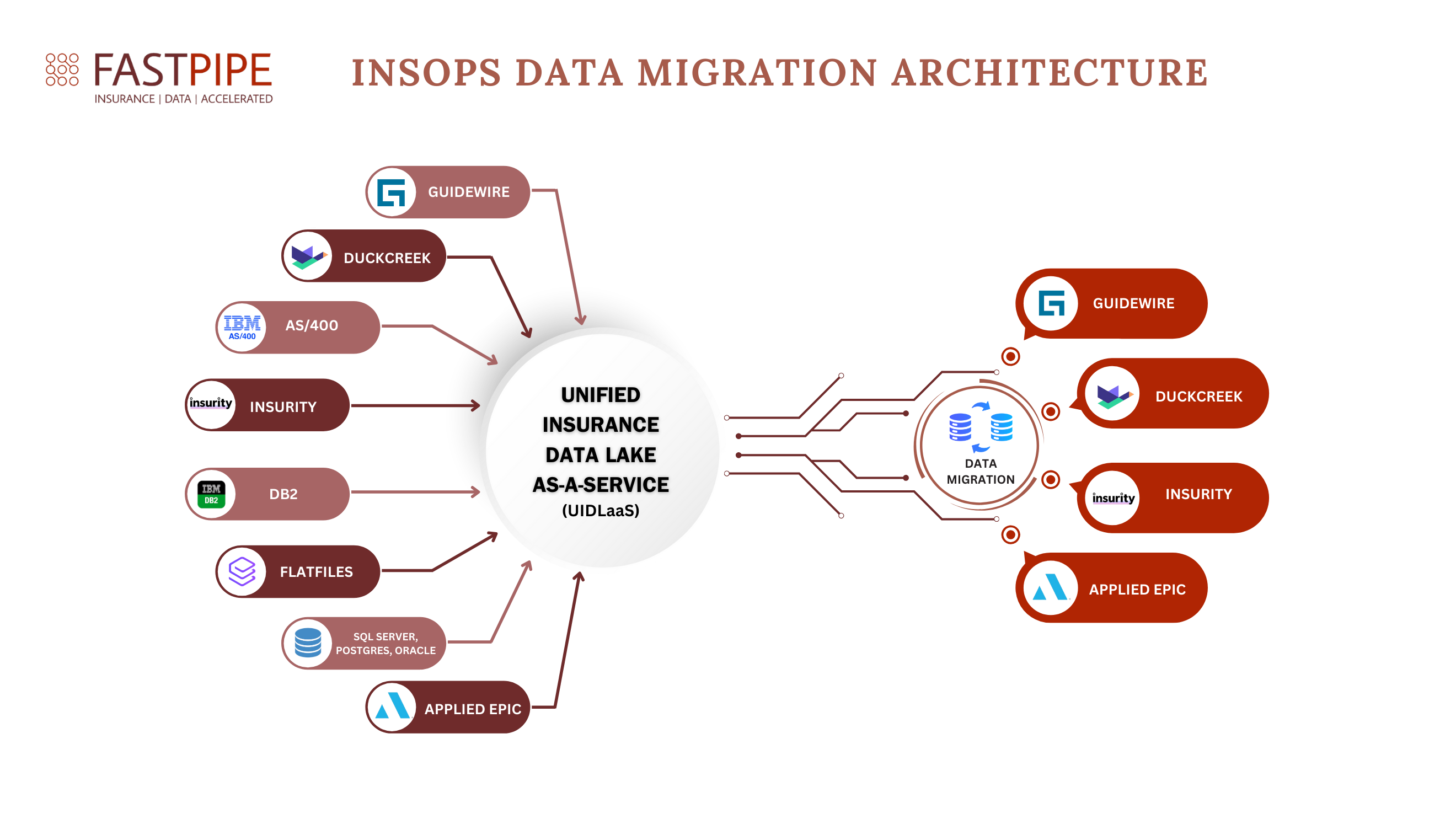 We have developer partnerships with leading P&C platform vendors, Broker Systems, and Agency Management Systems. If you are moving data in or out of Guidewire, Duck Creek, Majesco, Vertafore or Epic we should talk. And we are adding more vendors and more accelerators every quarter. Ask for a demo today and let FastPipe take out your garbage(data).